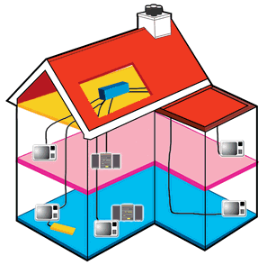 There are several types of Home Networks. From a simple distribution system that provides terrestrial TV reception to two or more TV’s, to a system that also permits multi-room viewing and control of SKY, Freeview, DVD, CCTV as well as terrestrial TV reception.