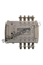 Vision 5-wire 24-output line powered multiswitch. Part of the V5 Sky Homes range. Powered with 18V DC at 160mA from horizontal trunk lines or by PSU directly. Input level controls for terrestrial, high and low band satellite polarities. Terrestrial input active full time. Satellite inputs only active when satellite receiver connected. Low power technique enables huge systems to be created, requiring only one mains power source. Outputs optimised for long and short subscriber cable runs, eliminating need for signal level correction. Colour coded inputs speed installation. Factory-fitted earthing hyperbars have no specification degradation, zero fitting time and require only one earth wire connection per bar for immediate UK safety compliance.